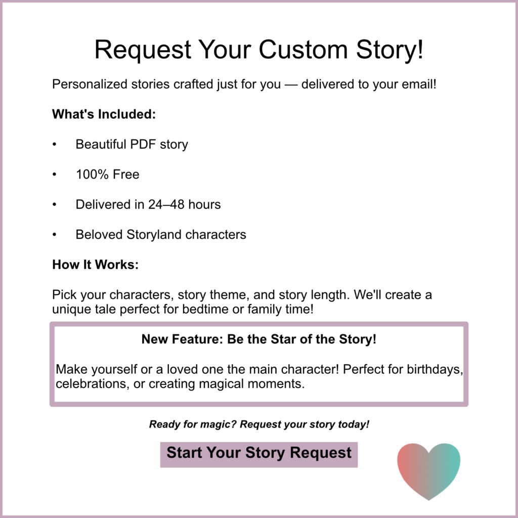 Storyland Canada is an enchanting retreat, brimming with mystical and magical characters—each radiating love and joy. It’s a place where endless adventures await, inviting exploration and discovery. I encourage you to delve into these stories, and if they touch your heart, please share them with your loved ones.